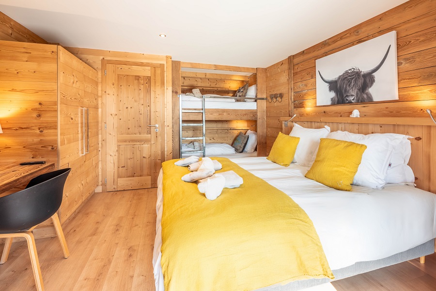 Le chalet offre une capacité d'accueil idéale de 10 à 12 personnes avec ses quatre chambres spacieuses et sa mezzanine, garantissant à chacun confort et intimité.