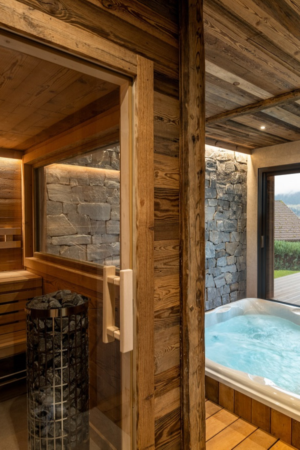 Au rez-de-jardin, un espace bien-être est à votre disposition, équipé d'un sauna électrique et d'un jacuzzi, idéal pour se ressourcer après une journée en montagne.